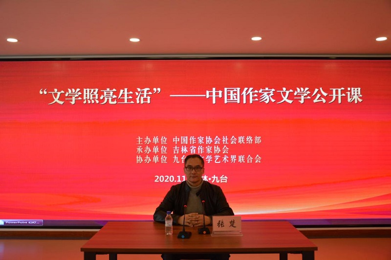 11月12日,由中國作家協會社會聯絡部主辦,吉林省作家協會承辦,東北師范大學文學院、九臺區文學藝術界聯合會協辦的“文學照亮生活”——中國作家“文學公開課”和文學閱讀分享活動在吉林舉辦?;顒友埖诹鶎敏斞肝膶W獎獲得者張楚、第七屆少數民族文學創作駿馬獎獲得者韓靜慧為高校師生、基層作家和文學愛好者講授文學創作技巧經驗,分享閱讀感悟與體會。