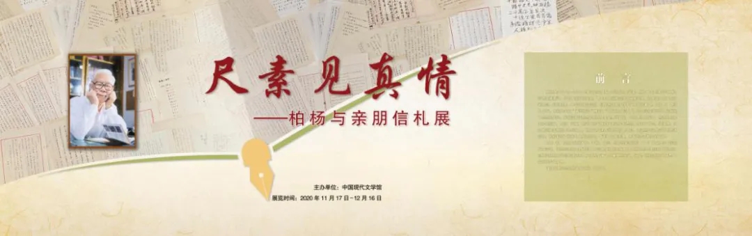 2020年11月17日,為紀念柏楊先生誕辰一百周年,“尺素見真情——柏楊與親朋信札展”在中國現代文學館拉開序幕,展覽展出柏楊先生與家人朋友讀者間書信95通。此展將持續到12月16日。