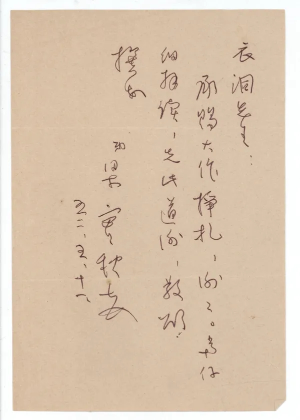 梁實秋致謝柏楊,云承賜大作《掙扎》,當仔細拜讀。