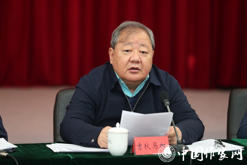 吉狄馬加在會上匯報了魯迅文學院70年來的發展情況。他說,魯迅文學院是我國唯一的國家級作家培訓機構。70年來,魯院一直敏銳地把握時代脈搏,努力踐行黨和國家文學發展政策和路線,成為傳承中國精神、堅守歷史使命與時代擔當的文學重鎮,滋養文學創造力的一片沃土。目前,魯院已形成了以中青年作家高級研討班為中心,兼顧少數民族作家、網絡文學作家、行業作家、基層作家,涵蓋學歷教育、短期培訓與國際文學交流,重點突出、覆蓋全面、成熟穩定的辦學格局和培訓模式。魯迅文學院的70年是與新中國文學事業共同成長的70年,是為當代文學培育和輸送人才的70年。70年來,一代又一代作家在這里勤勉學習、積極交流、深入思考,沉潛、再出發,在文學之路走得更高更遠。70年里,一代又一代魯院人兢兢業業,辛勤付出,與時俱進,開拓進取,為魯院的建設和發展傾注智慧和汗水,使魯院的文脈得以長久傳承和弘揚。在未來的時光中,魯迅文學院必將繼續在黨的堅強領導下,將使命扛在肩頭,以飽滿的姿態不懈進取,持續發力,緊貼時代脈搏,做到無愧于時代和人民的期望,為新時代中國特色社會主義文學教育事業作出更大的貢獻。