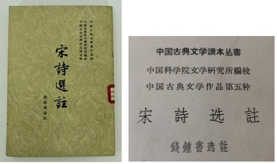 1958年9月初版錢鍾書《宋詩選注》封面及扉頁標注:“中國古典文學讀本叢書|中國科學院文學研究所編校|中國古典文學作品第五種”