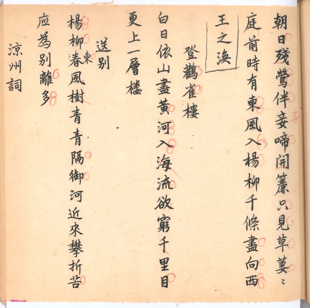 稿本內頁。錢楊二位先生有常年習字的習慣,圖中勾圈處為楊絳先生認為自己寫得好的字。據人文社負責人介紹,楊絳先生《錢鍾書選唐詩》的手稿版將在2021年由人民文學出版社影印出版,供讀者更真切地欣賞錢楊二位先生怎樣抄、怎樣讀。