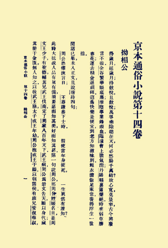 張瑞田編《龍榆生師友書札》(浙江古籍出版社,2019年)內收有一通周作人手札,信中向龍榆生討教道:“日前王古魯君來談,宋人詞話《拗相公》中引‘周公恐懼流言日’一絕句,問為誰作,手頭只有一部《唐人千首絕句》,遍查不得,直覺此詩似是宋人口吻,卻亦無從證明,不知兄記得其撰人名氏否,乞便中示及為幸?!碧岬降哪瞧八稳嗽~話《拗相公》”,收錄在《京本通俗小說》卷十四,又見于馮夢龍所編《警世通言》第四卷,而改題為“拗相公飲恨半山堂”。小說甫一開始,“未入正文,且說唐詩四句:周公恐懼流言日,王莽謙恭下士時。假使當時身便死,一生真偽有誰知?”接著總結該篇主旨,“此詩大抵說人品有真有偽,須要惡而知其美,好而知其惡”。在不厭其煩地仔細疏釋詩中所用周公、王莽的相關典故后,小說又進而強調,“所以古人說:‘日久見人心?!值溃骸w棺論始定?!豢梢砸粫r之譽,斷其為君子;不可以一時之謗,斷其為小人”,隨后才進入主題,講述“拗相公”王安石的故事。王古魯早年只身遠赴東瀛,探訪過大批珍稀小說資料,其后又整理校注過馮夢龍所編《全像古今小說》(商務印書館,1947年),如今想要深入查考小說中的這個細節,自屬其治學范圍內的本分??磥碇茏魅藢@首詩的出處也很好奇,可惜經過一番認真翻檢,依然未能探得其淵源所自。