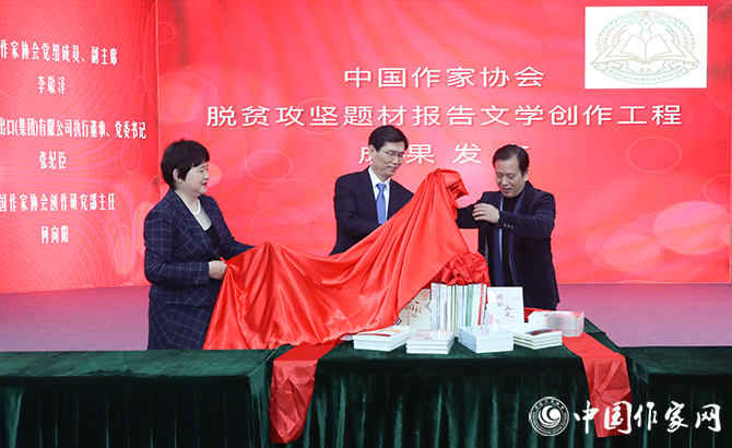 李敬澤、張紀臣、何向陽為“脫貧攻堅題材報告文學創作工程”圖書揭幕