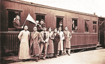 歷史系同學去山西參觀途中,左一為夏鼐,右四為郭秀瑩,右三為許亞芬