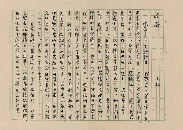 從嘉德公布的手稿目錄來看,這批手稿中有近十件都是談論吃食,筆力所及之處不光是故鄉的美食,還談及日本美食,周作人寫在北京一直連續住了四十多年“時常還記憶起故鄉的吃食來,覺得不能忘記”。在《閑話毛筍》中,他寫因為有“肥甘”,而中了“思鄉的盅惑”,“主要是食品里的筍,其次是煮熟的四角大菱,果子里的楊梅?!薄蛾憡W地方的粗點心》從日本的菓子談起,談日本寺廟的風土人情和有趣的見聞,最后落筆在“我在茫然的望著給風吹起聚集攏來的落葉,心里卻在想著專稱寺起原的悲哀的故事”?!冻圆琛分?,周作人則一一例舉自己喜歡的茶,除常飲的龍井外,碧羅春、六安茶、太平猴魁偶有嘗鮮,又對苦丁茶與香片一一品評。