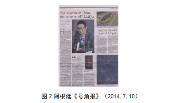圖1至圖4是關于《解密》的拉美西班牙語媒體報到部分截圖4。根據筆者2014年6月份至12月份的統計,麥家《解密》一書在整個西班牙語媒體上的曝光次數多達40次,圖1至圖4的兩份拉美國家媒體報道,顯示了這本書在西班牙世界的熱度。中國當代文學作家在西班牙語圖書市場上如此大規模的曝光,這是中國當代文學史上的第一次。