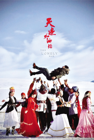 《天邊加油站》的海報上,紅色的加油站標牌,在一眼望不到邊際的素色雪原背景中呈現出來,給人一種心靈震撼之美。它展示的不僅是一部邊疆風情的唯美畫卷,還是一首抒情詩,更是一首民族團結的頌歌。