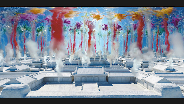 蔡國強,《夢游紫禁城》VR,觀眾通過VR觀看在虛擬時空中的白天煙花