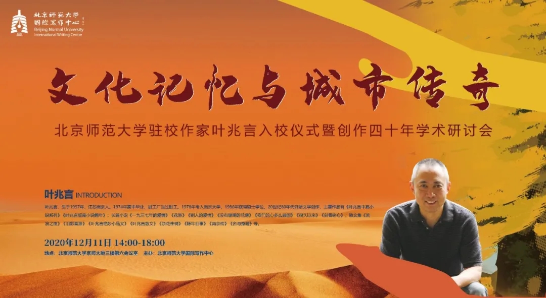 近日,作家葉兆言受聘成為北京師范大學國際寫作中心駐校作家。在入校儀式暨創作四十年學術研討會上,莫言、閻晶明、余華、蘇童、歐陽江河、西川、白燁、陳曉明、王彬彬、金寧、施戰軍、徐可、李洱、賈夢瑋、王春林、李遇春、顧廣梅、康震、張清華、陳暉、張莉、翟文鋮、張曉琴等作家學者以“文化記憶與城市傳奇”為核心,探討了葉兆言四十年來的文學創作。