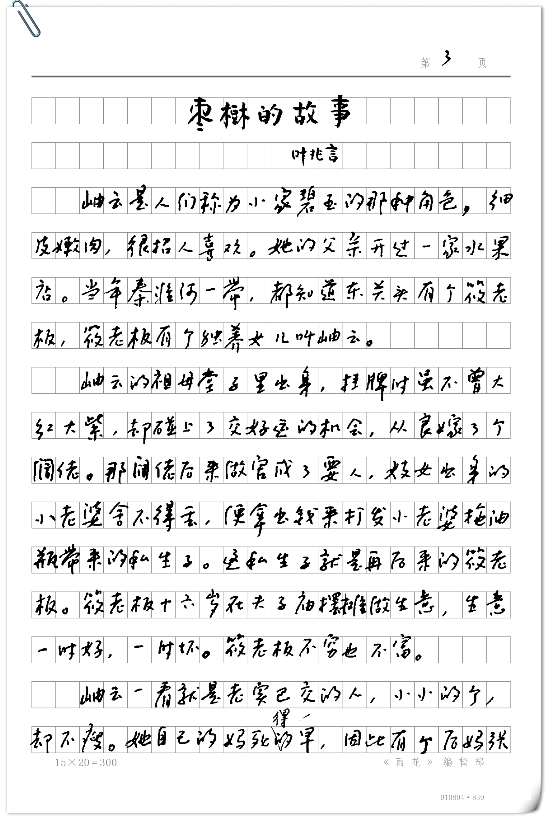 《棗樹的故事》發表于《收獲》1988年第2期,《作品》雜志2018年第10期“手稿”欄目刊載了小說手稿