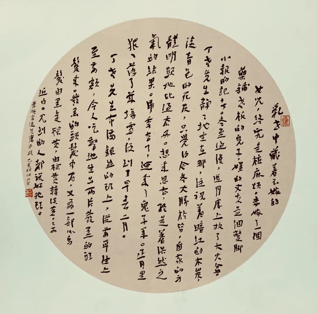 歐陽江河抄錄葉兆言《追月樓》中的一段文字,并在研討會上將書法作品贈送給葉兆言?!皝y世中藏著不嫁的女兒,終究是樁麻煩。孌嫁了一個藥鋪老板的兒子,嫘的丈夫是個蹩腳小報的記者。冬至過后,追月樓上放了個大火盆。丁老先生靜靜地坐在那,注視著暗紅的木炭,淡青色的死灰,只覺得今冬大勝于昔,自家的身體明顯地比過去好。想來思去,終是養浩然之氣的結果?;⒛耆チ?,迎來了兔子年。正月里狠狠落了幾場雪,便到了早春二月。丁老先生布滿銀絲的頭上,從兩耳往上至前額,令人吃驚地生出兩片發黑的頭發來。發黑的頭發中間,又有一部分烏發由黑變棕黃,由棕黃轉淡黃,黃而近白。見到的人都說好兆頭?!?/span>