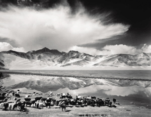 一臺古老而又沉重的相機,和由它帶來的幾分笨拙而又充滿儀式感的觀看世界的方式,正好對應了馮建國在中國西部尋夢的心境。如今,馮建國常教導學生,“你所向往的東西就純粹地去做”?;蛟S是帕米爾高原千年冰山的呼喚,或許是塔克拉瑪干沙漠遠古駝鈴的回響,還有青藏高原朝圣的腳步、誦經的吟唱……印證了他對西部的無盡向往和與大畫幅黑白攝影的不解之緣。