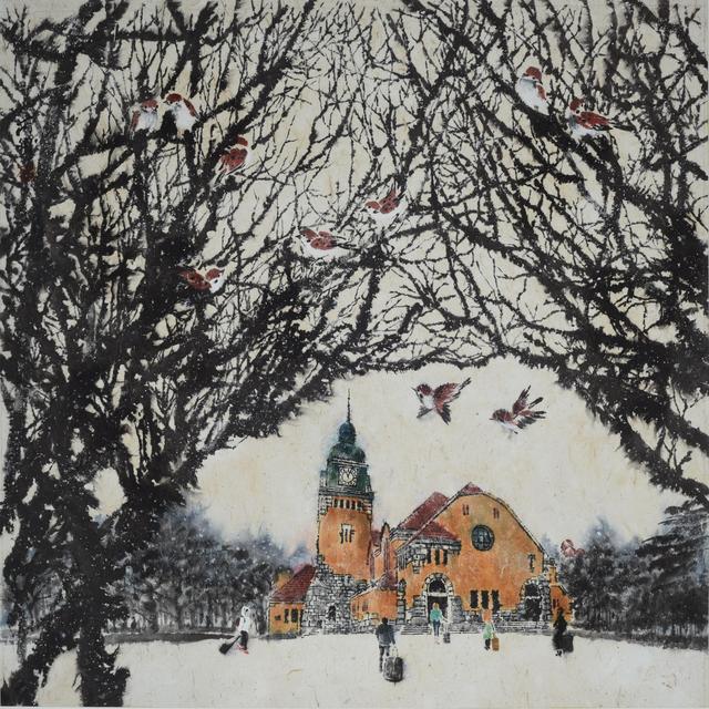 郭丙州中國畫參展作品《青島老站印象》 96cmx96cm