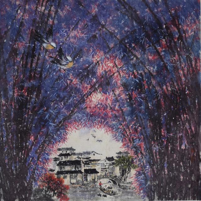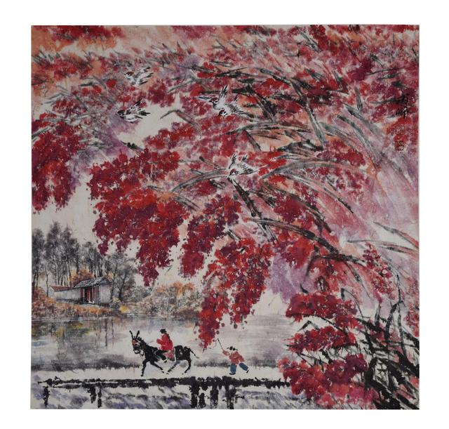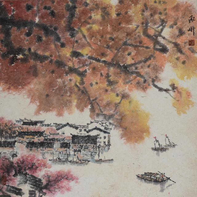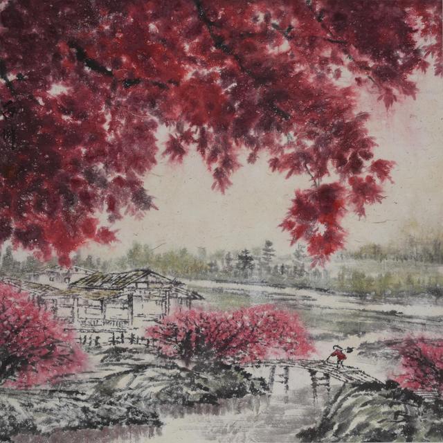 郭丙州中國畫參展作品《徽鄉秋雨》 96cmx96cm