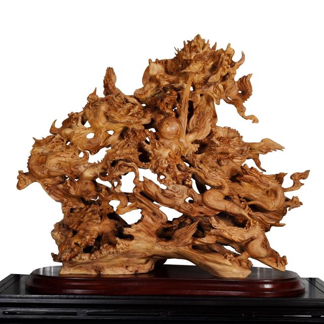 郭丙州藏品之九龍戲珠 老山檀香 70cmx33cmx62cm 作者徐國華 劉麗 攝