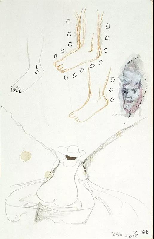 時隔多少年積攢而成的手稿與藝術家嚴肅的架上創作呈現出迥然不同的面貌,就像是藝術機體的另一種橫截面,與嚴肅創作和藝術展覽構成了互文關系,從而豐富了整體。這次實踐無疑向著鼴書“接近藝術家書核心”的期待邁進了扎實的一步。
