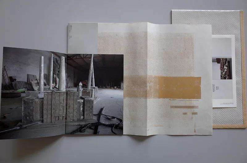 陸壘一直回避使用文字對他的創作加以描述,所以整本書只有一句話:我想寫“小說”,寫我的記憶和感知,以及一切荒唐的念頭。鼴書在這本冊子的制作中延續了對圖像敘事以及視覺語言的關注, 冊子由圖像集成,分為三個部分:主冊,是“小說”的主干,串聯起諸多意象的內在的陳述,可以視其為“骨”;兩本輔冊,分別聚焦于作品存在的兩個物理場景:工廠與展廳,展廳無疑是呈現作品最肯定的面貌,但工廠則體現一個過程,存在大量更生動的表情。
