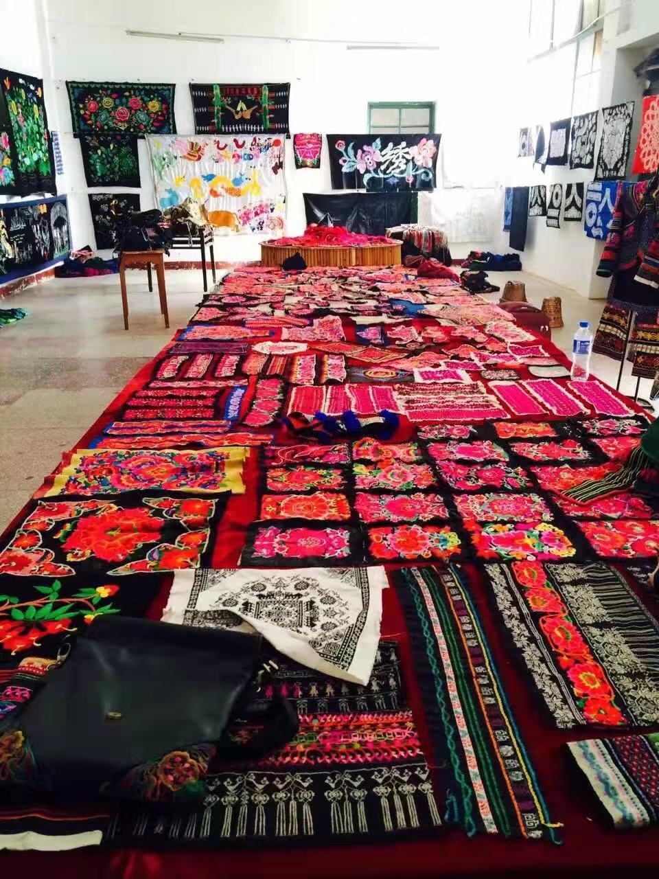 這條褲子不久前被云南藝術學院的學生拿去鑒定,是康熙年間的繡品,是李如秀最老的一件藏品。當地老人有用繡品陪葬的習慣,大量老繡片隨著老人身故隨葬地下,有些繡法也就此失傳。李如秀覺得可惜,一家家跑去問當地老繡娘收了來,有些繡片是談了好多年才買到手。如今受商品經濟沖擊,還在做彝繡的繡娘越來越少,李如秀鼓勵她們,只要繡了東西出來,她都花錢收來。