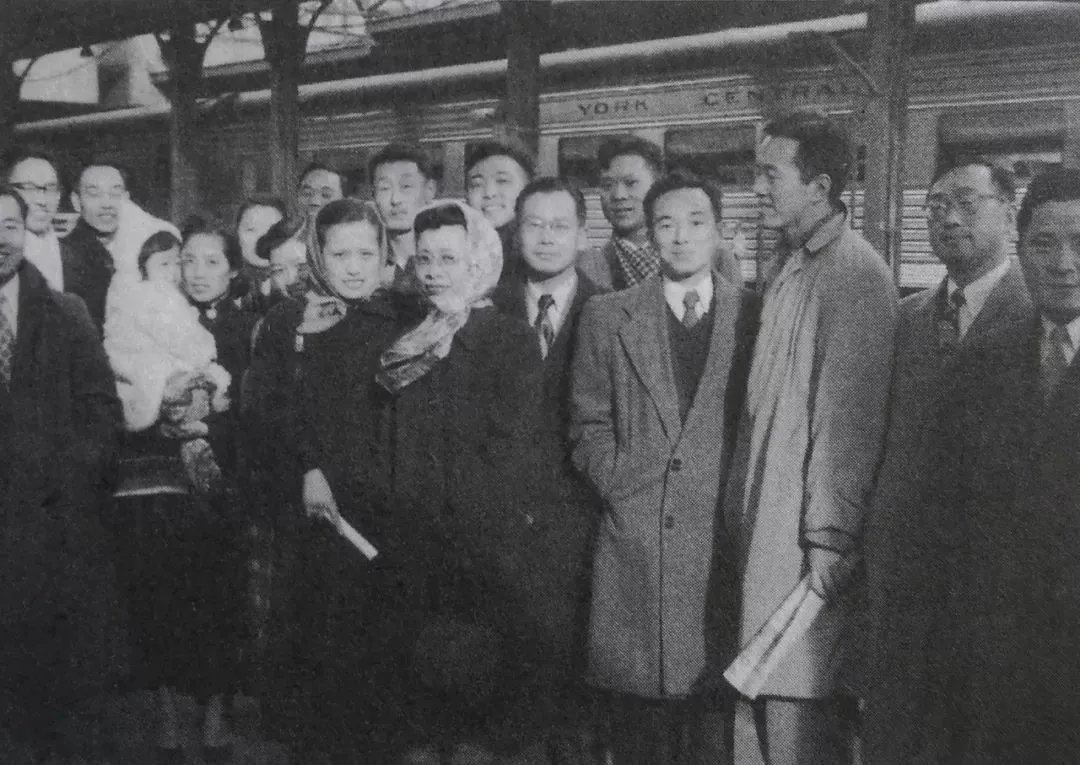 穆旦夫婦回國前在火車站與送行的同學朋友合影