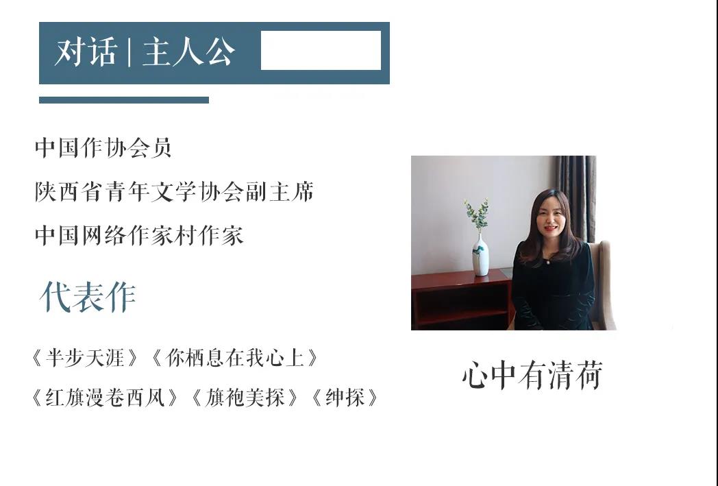 心中有清荷:這一年來,我完成了《為你放牧滿天星》的小說,并開始創作電視劇劇本。出版了《你棲息在我心上》,三年前編劇的電視劇《旗袍美探》在北京衛視和騰訊視頻播出,收視全網全國第一。明年希望能完成交通題材的小說,《為你放牧滿天星》能順利開拍及播出,另一部青春劇《最美不若初相見》也能順利開機拍攝。