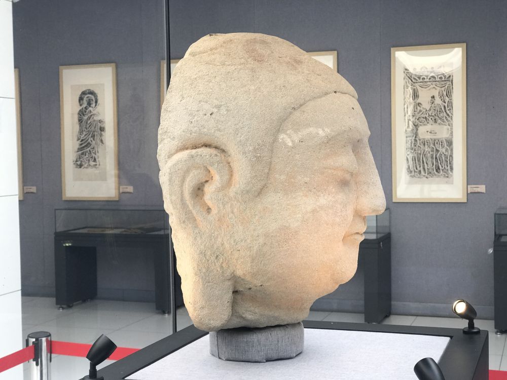 2月12日,在北京魯迅博物館展出的天龍山石窟佛首。新華社記者 范思翔 攝