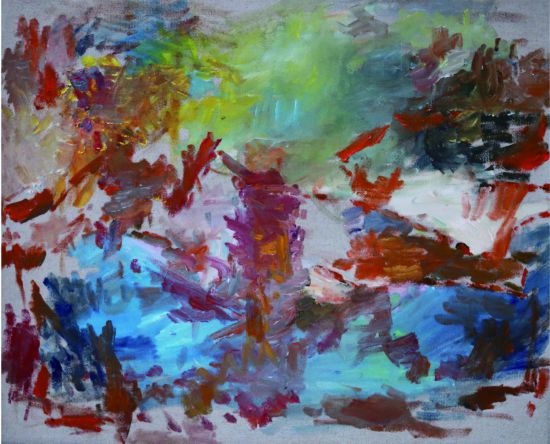 這種臨場感的和諧使畫家不再固執于數十年的具象繪畫訓練。事物的在場,當然包含了比一套固定技法或繪畫體系要多得多的意義。因此,現場創作仿佛一場嚴肅的儀式,旨在把已經失去聯系的世界重新請回到畫布上。真正能夠呈現在畫布上的不過是這個世界的顯像,但通過抽象,顯像就表達為一系列感官知覺的鏈接與游戲,也就是富有自發性的色彩。畫家將這種追求稱之為創造過程中主觀和客觀的互動。色彩也好,形體也罷,無不是取之于外、判攝于內的創作過程,最終呈現為有意味的筆觸,或用畫家自己的話來說,“印象派作品的外光閃爍感”。當然,從這個意義上說,追求筆觸的“來處”——無論這種來處是否是主客交融的產物——不妨仍然視為對創作對象的一種“摹寫”,但是,抽象意識的自覺則恰好剔除了這種“摹寫”的客觀意味。換言之,印象派執著于外部客觀性或者說光影之“真”的追求,完全被畫家關于抽象繪畫的自我理解所取代。實際上,這種理解可以非常傳統地形諸于傳統繪畫的內外關系,從而與西方抽象畫傳統的自我理解判然有別。