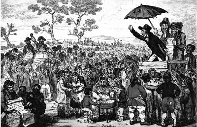 與法國漫畫直陳時弊相比,英國漫畫涉及內容更為豐富。17世紀英國的漫畫多為黑白木刻,有不少描繪了英國內戰的相關戰事;而18世紀的漫畫則多為彩繪,以套刻彩版印制,主要在版畫店出售,帶有商業營銷性質。以18、19世紀之交為界,在此前后的英國漫畫主題發生了明顯變化,18世紀中后期漫畫多以社會生活為表現內容,而在此之后的18世紀末、19世紀初的漫畫則多以政治活動為表現內容。