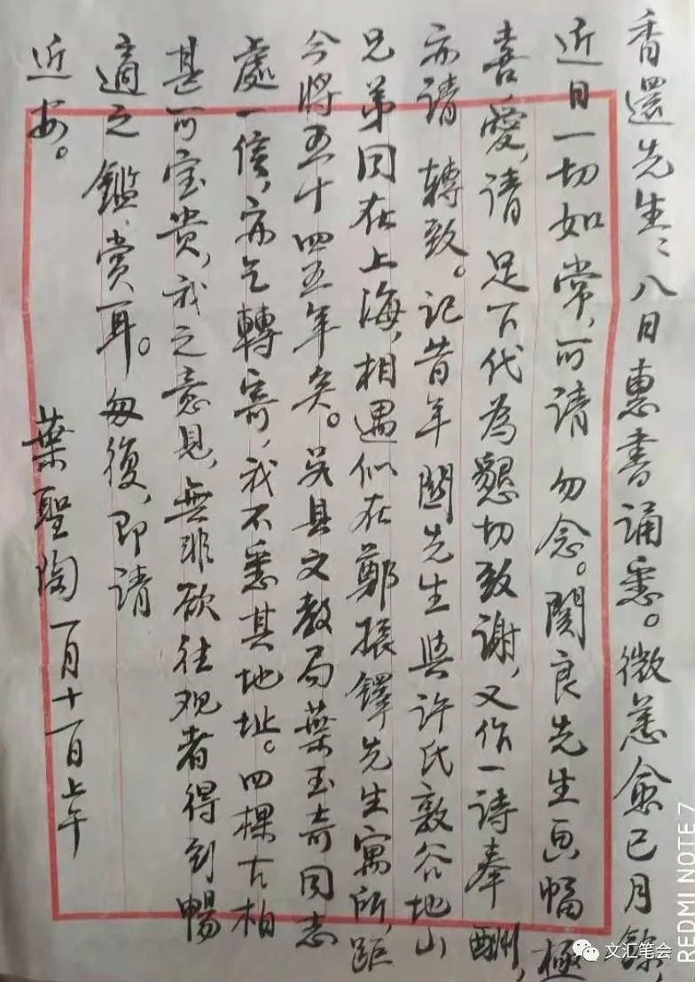香還同志:來書誦悉。我到上海,足下大概得之自傳聞。其實我早已說明,出門無伴,故而不能參加開會。承蒙盼望,深感厚意?!艾F代”與“古代”相對。有古漢語,乃有現代漢語。有古代史,乃有現代史。兒童文學是否有古代的,似乎可商。請足下與其他同志商量一下。如果“現代兒童文學”可以用,我勉力寫幾個毛筆字自然可以照辦。匆復,即問