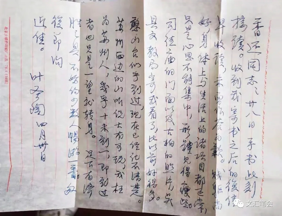 香還同志:廿八日手書此刻接讀。收到我寄書之后的復信早收讀,未曾作答為歉。賤軀尚好,身體上與生活上的諸項目都正常,只是心思不能集中,形體見得瘦些。司徒廟的門面以及古柏的照片,吳縣文教局寄我看了,比以前好得多。憨山臺似乎到過,現在已經記不清楚。蘇州西邊的山聽說大有可玩,我枉為蘇州人,幾乎十未到一,即到過者也只是一望就轉身。足下有濟勝之具,不妨約少數人暢游一番。匆復,即問