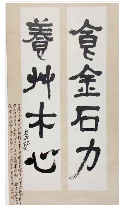 吳昌碩贈予王個簃的隸書四言聯“食金石力,養草木心”