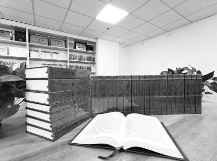 黃褐色仿皮封面、16開精裝的25冊《居米龐嘉央南杰嘉措文集》(藏文)整齊地排列在書架上,足足有一米多長。在燈光的映照下,充滿了歷史的厚重感。李樹軍告訴記者,這套書以四川省德格縣宗薩印經院雕刻印行的27函木刻本為底本,出版時將27函整合為25冊,全書依據藏文規范進行排版,基本保存了藏文古籍文獻的原貌。