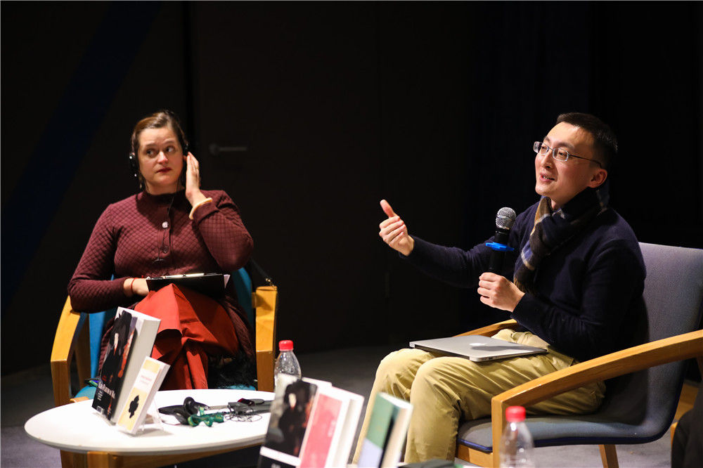 3月17日,北京法國文化中心舉行“閱讀波德萊爾”講座,復旦大學外國語言文學學院法文系副教授楊振(右一)在現場發言。 受訪者供圖