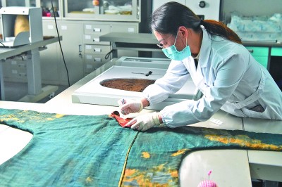 馬葉楨說:“一些珍貴的文物從我們看到它的第一眼,就覺得它破損得太厲害了,我們想盡了一切辦法,最終還是無法把它們修復好。甚至不知道它們當初是個什么?是件上衣還是條褲子?但因為它們原來的花紋特別美麗,拿到今天也是十分時尚的,所以我們用盡所有辦法,將它們清洗干凈,等待以后再有新發現時,再做更好地修復?!?/p>