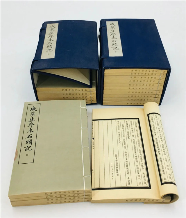《紅樓夢》的版本情況十分復雜,在它面世之初較長的一段時期里,只以抄本的形式流傳,直到1791年程偉元、高鶚整理刊印一百二十回《紅樓夢》,才開啟了《紅樓夢》印刷本的傳播。早期抄本雖然基本限于八十回之內,但存世的不同抄本較多,各抄本之間文字的差異也較大,為后世的紅學研究提供了豐富的材料。今天,這些抄本大都成了珍貴的文物,藏之秘閣,一般讀者幾乎很難窺得其原貌。人文社在建社之初就很重視《紅樓夢》及相關圖書的出版,所以早在1955年,即以副牌文學古籍刊行社影印出版了《脂硯齋重評石頭記》(庚辰本),這是保存回數較多的抄本(共存78回),朱墨兩色套印,原缺的第六十四、六十七回以己卯本補足。1970年代,文學古籍刊行社以線裝本的形式再版《脂硯齋重評石頭記》(庚辰本),并影印出版了另一個重要的早期抄本:《戚蓼生序本石頭記》。
