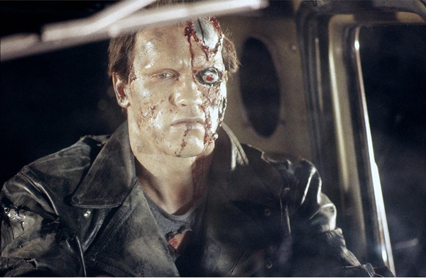 1987年的經典科幻電影《終結者》講述未來已被機器人統治,為了徹底消滅人類,機器人派出終結者T-800回到1984年,阻止未來的人類領袖誕生。施瓦辛格飾演的終結者是機械骨骼與人體組織的“混合物”,不具備自主意識,視執行指令高于一切。他傳達的恐懼感也來源于此,隱藏在人類外表下的冰冷機械摧毀了人類對自我的熟悉認知,對指令高度執著,即便外表損毀,碎成殘肢,依舊像無法驅散的夢魘追隨人類。