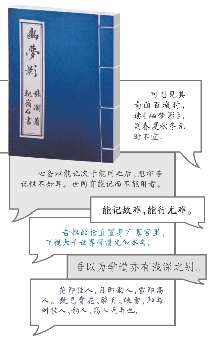 譬如通過網絡閱讀,雖說碎片化些,可一篇文章流出,后面七言八語跟帖,議論紛紛,說好評差,多少熱鬧,原以為這是今人獨有的優勢,哪知在看了清人的《幽夢影》之后,這優勢也顯得不那么明顯了。