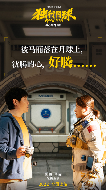 《獨行月球》是沈騰和馬麗繼2015年《夏洛特煩惱》后,時隔7年再次合作的劇情長片。和以往作品中“沈騰總是傷馬麗的心”不同,這次沈騰被馬麗落在了月球上,不僅感受了一次“心騰”,而且每天都在挑戰體力極限,在攝影棚中“奔騰不息”、吊著威亞體會“騰痛文學”......雖然很辛苦,但敬業的沈叔叔依舊活力滿滿,沈騰一開口,在場的每個人都會“笑得肚子騰”。