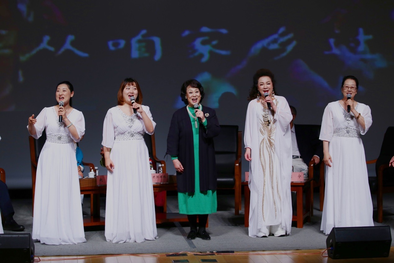 鄧玉華(中)與從讀者中招募的合唱團成員共同演唱了《情深誼長》