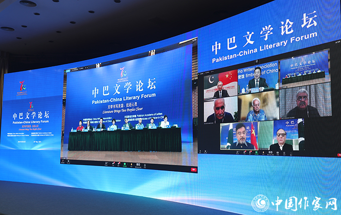 論壇上,周瑄璞、元康、武歆、霍俊明、周袁等中國作家、詩人、學者和穆斯坦薩爾·侯賽因·塔拉爾、賈米·錢迪歐、阿巴辛·尤薩夫扎伊、穆尼爾·艾哈邁德·巴迪尼、馬克蘇德·賈弗里等巴基斯坦作家、詩人輪流發言,圍繞論壇主題和“文學在中巴命運共同體中的獨特作用”“中巴文學傳統與未來趨勢”等分議題展開廣泛深入的交流。大家表示,疫情雖然阻隔了大家的相聚,但中巴兩國人民始終心心相連。文學是中巴兩國溝通交流的重要橋梁和紐帶。隨著兩國學習漢語和烏爾都語的人數不斷增加、經典著作互譯出版合作的開展,中巴文學交流呈現出良好勢頭和巨大潛力。相信此次論壇的舉辦,必將進一步深化中巴作家和人民的相互了解,切實促進兩國的民心相通,更好地鞏固雙方的文學交往,把兩國文學合作推向全新階段,為攜手打造新時代更加緊密的中巴命運共同體作出積極貢獻。