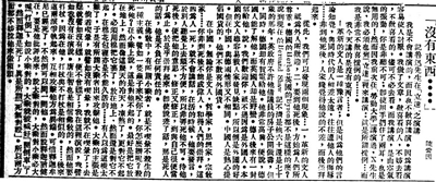 “這次演講,尚記得題目是‘偉人的化石’,大意是說偉人在生前處處高享是受人嫉視,合不上道兒,及其既死,則又無點不受人歡迎,含意深刻而沉痛!”