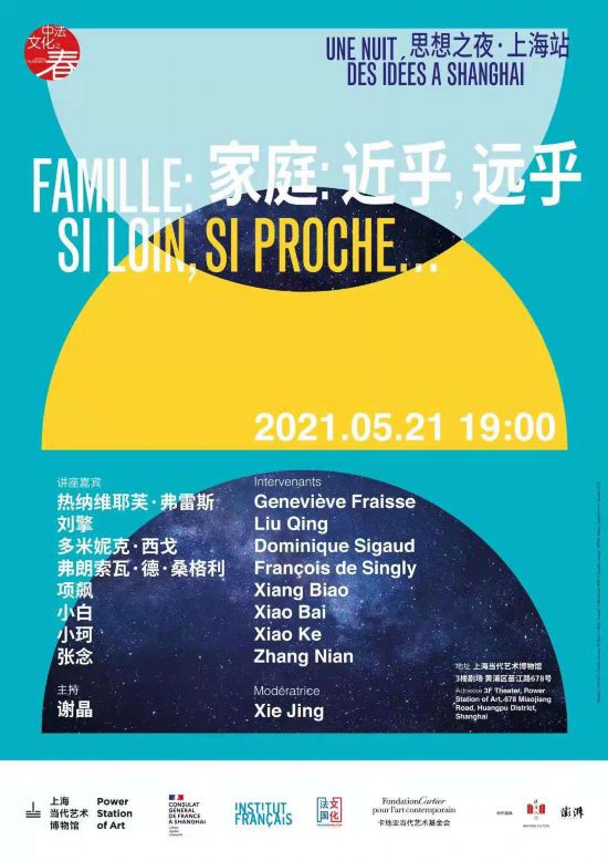 5月21日,一個圍繞“家庭”展開的思想之夜在上海當代藝術博物館(PSA)拉開帷幕,8位中法思想界、文藝界的代表以線下和線上相結合的方式,以中國和歐洲為背景,從社會學、哲學、人類學、文學、藝術等學科出發,深入探討了關于當代家庭生活、親密關系和女性位置的方方面面,為現場觀眾帶來了一場豐盈而深邃、熱情而理性的思想盛筵。