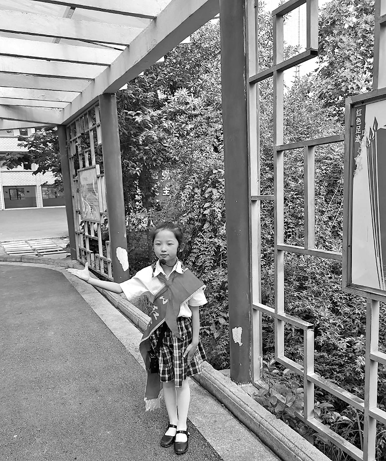 ▲ 井岡山實驗小學的小講解員在講解井岡山革命故事