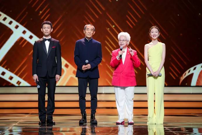 金爵盛典上,電影表演藝術家田華、導演張藝謀、演員張譯、周冬雨,以《我們的時代》為題,講述了他們與電影的不解之緣,“雖然我們年齡上,經歷上,差了很多,但作為電影人,我們的心愿是一樣的——拍出更多的好電影,不辜負觀眾的厚愛,致敬偉大的時代!”