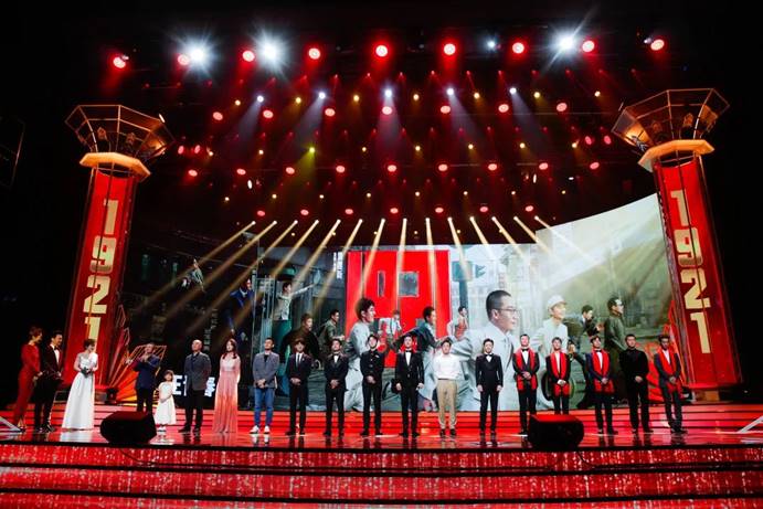 金爵盛典之后,現場觀眾與嘉賓共同欣賞了開幕影片《1921》。影片以“南陳北李”相約建黨開篇,“南陳北李”遞出的革命火種,被信仰馬克思主義的“新青年”們徹底點燃。他們共同奔赴一個路途不乏坎坷,但前途無比光明的“新生”的中國。影片聚焦了黨的一大在上海又轉場嘉興南湖秘密召開的時間節點。重現了中國共產黨第一次全國代表大會召開這一波瀾壯闊的歷史時刻,敘事重心是一大代表充滿朝氣的青春面貌和為理想奮斗的家國情懷?!斑@也是在大銀幕上,第一次可以讓觀眾真正走進當時這些建黨的年輕人們的生活和精神世界。之前《建黨偉業》等片關于中國共產黨‘一大’的召開和這些代表們的描摹,都因篇幅有限,還從未充分展現過細節?!痹撈瑢а蔹S建新如是說。青年演員黃軒、袁文康、祖峰、竇驍、王仁君、張頌文、劉家祎、王俊凱、韓東君、劉昊然、張超、張云龍、胡先煦在片中分別飾演13位一大代表。