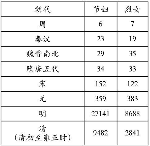 東周至清前期節婦、烈女數量變化表