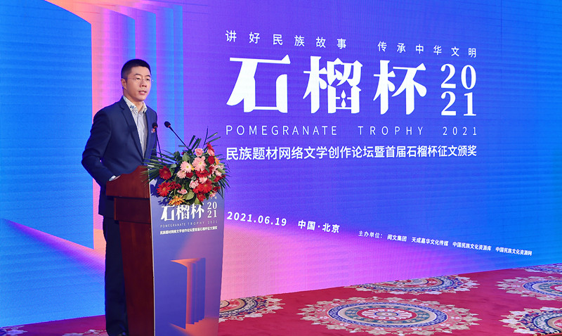 6月19日,民族題材網絡文學創作論壇暨首屆石榴杯征文大賽頒獎典禮在北京舉行。作為國家民委主辦的“中華民族全家?!毕盗谢顒又?,首屆石榴杯征文大賽得到了國家民委文化宣傳司和中國少數民族文化藝術促進會的指導與支持,由閱文集團聯合中國民族文化資源庫、中國民族文化資源網、天成嘉華文化傳媒共同舉辦。