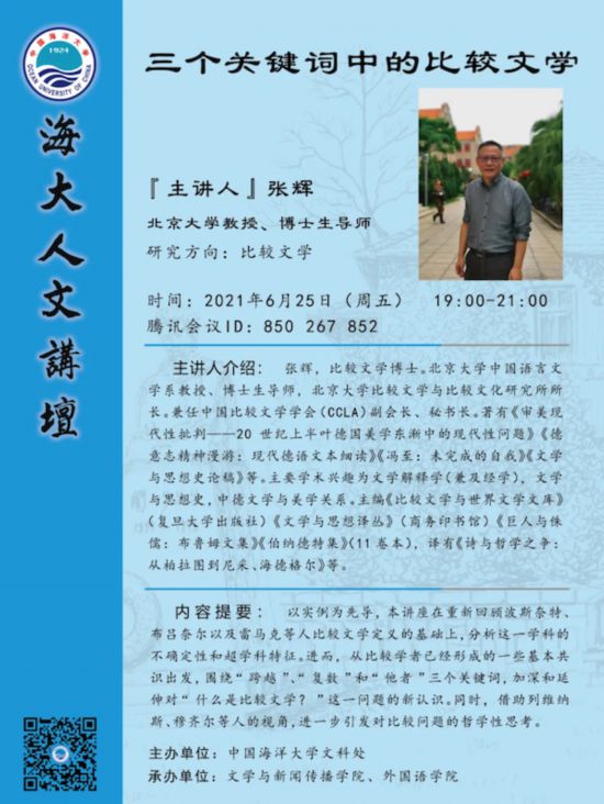 以實例為先導,本講座在重新回顧波斯奈特、布呂奈爾以及雷馬克等人比較文學定義的基礎上,分析這一學科的不確定性和超學科特征。進而,從比較學者已經形成的一些基本共識出發,圍繞“跨越”、“復數”和“他者”三個關鍵詞,加深和延伸“什么是比較文學”這一問題的新認識。同時,借助列維納斯、穆齊爾等人的視角,進一步引發對比較問題的哲學性思考。