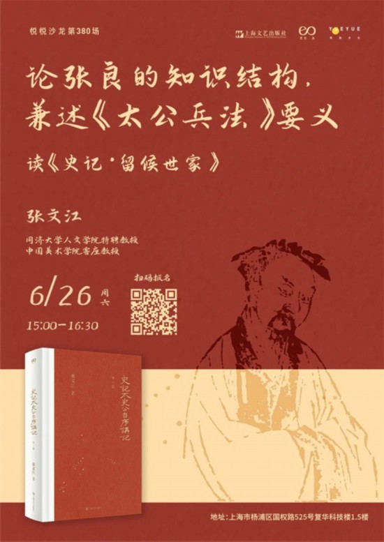 本場講座,嘉賓張文江教授將通過解析《史記·留侯世家》的相關內容,探討西漢第一功臣張良的知識結構,兼述《太公兵法》的流傳及其要義,理解圯上老父不言之教的內容。