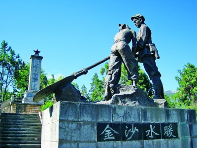 勇毅的先驅,高擎理想的火炬,朝著光明疾行。燃燒的熾焰,紅透大江之濱。英雄的形象,也永遠留在石鼓渡口,勛章般凝重、壯美。